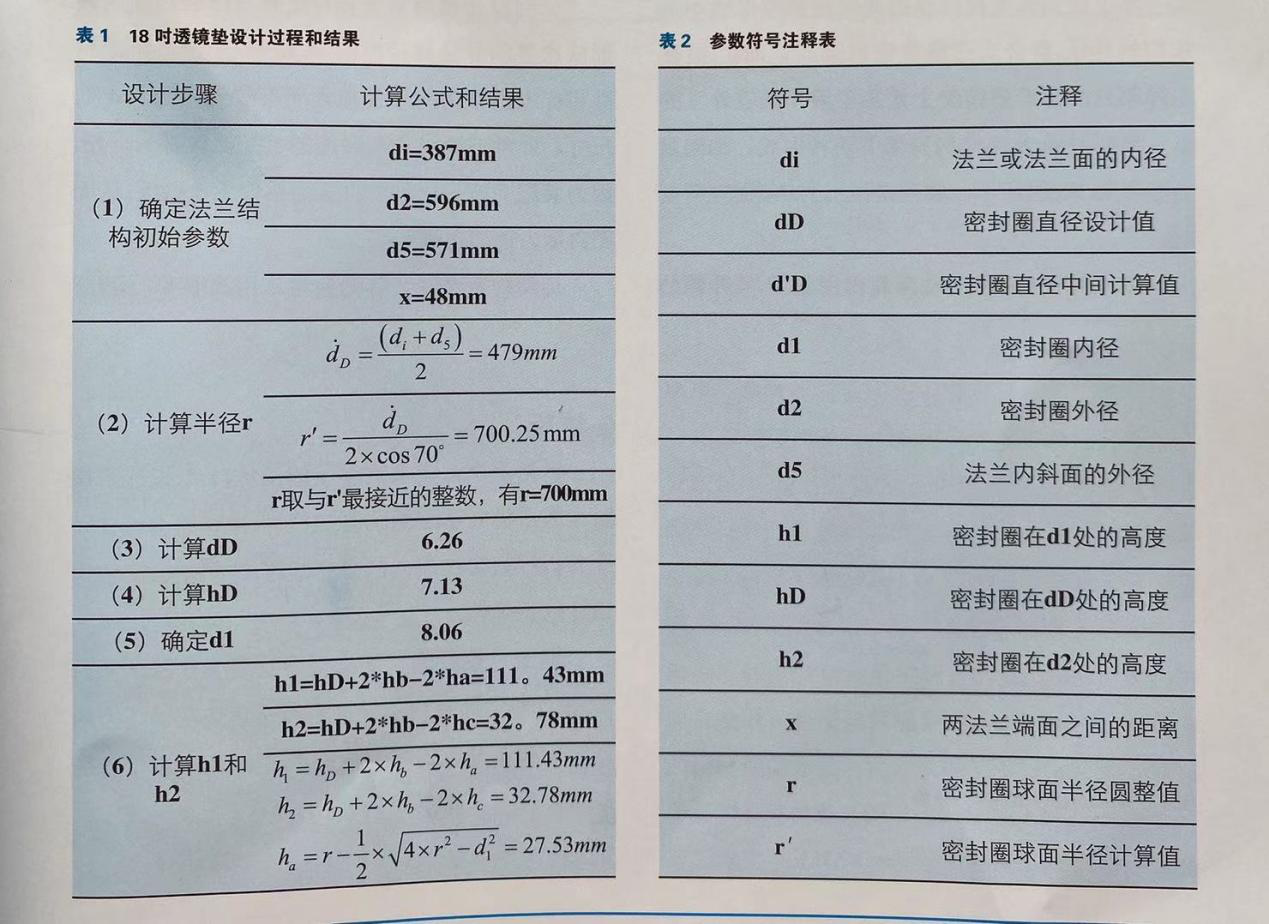 大差異。在進行水下密封研究的過程中發現,大于6時規格的透鏡墊產品幾乎不存在。在研究金屬密封原理的基礎上,結合德國標準給出的設計方法,設計出了一種18時的大直徑透鏡式金屬密封圈。通過有限元方法對其密封性能進行分析,結果驗證了該透鏡式密封圈的設計合理,且能安全使用。最后,給出了兩種實用的復合透鏡式密封圈使用的形式,能夠在滿足工作內壓的基礎上兼顧水下環境的外壓要求。